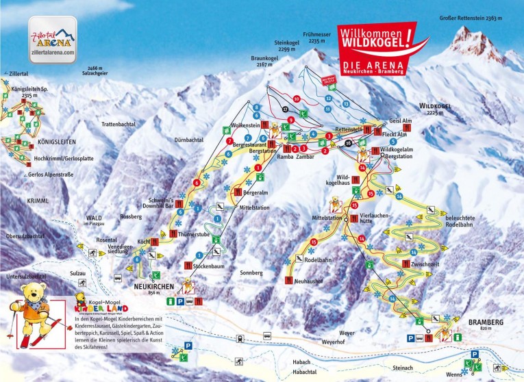 Skiing in Neukirchen starts right from the village, with a gondola taking skiers directly up into the heart of the Wildkogel-Arena. The resort offers 75 km of well-groomed pistes, with wide blue and red runs ideal for beginners and intermediate skiers. Modern lifts and clear signage make navigation easy, while snow parks and beginner areas provide extra variety and fun. With the Wildkogel-Arena as the main ski area, visitors can enjoy stunning views and consistent snow conditions throughout the season. For those looking to explore further, Neukirchen also offers access to the nearby ski regions of the Zillertal and Kitzbühel Alps, making it an excellent base for discovering more of the Austrian Alps.